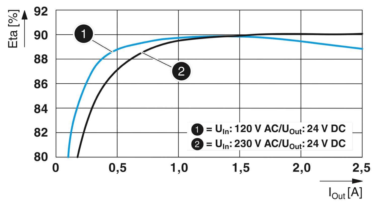 فونیکس کنتاکت مدل PS-EE-2G/1AC/24DC/60W/SC2.5 در حالت ورودی سه فاز در صورت قطع یکفاز اختلالی در عملکرد سیستم بوجود نمی آید و منبع تغذیه با دو فاز باقیمانده به عملکرد خود ادامه میدهد.