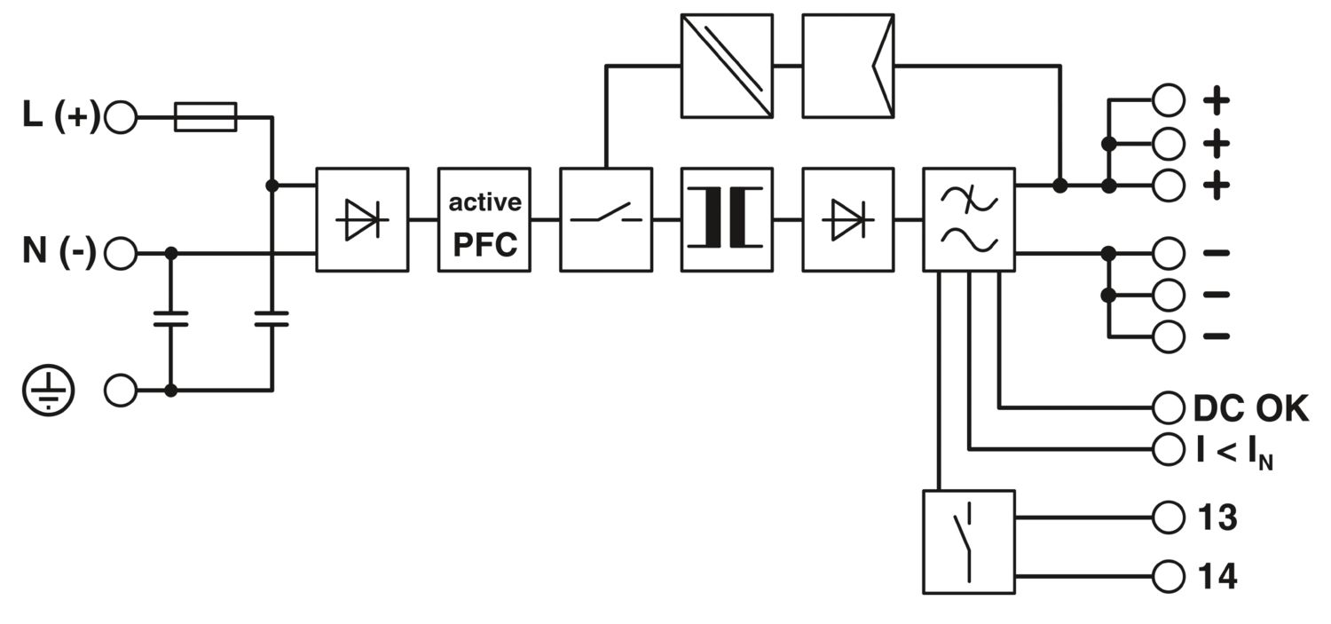 فونیکس کنتاکت مدل QUINT-PS/1AC/24DC/10 در حالت ورودی سه فاز در صورت قطع یکفاز اختلالی در عملکرد سیستم بوجود نمی آید و منبع تغذیه با دو فاز باقیمانده به عملکرد خود ادامه میدهد.