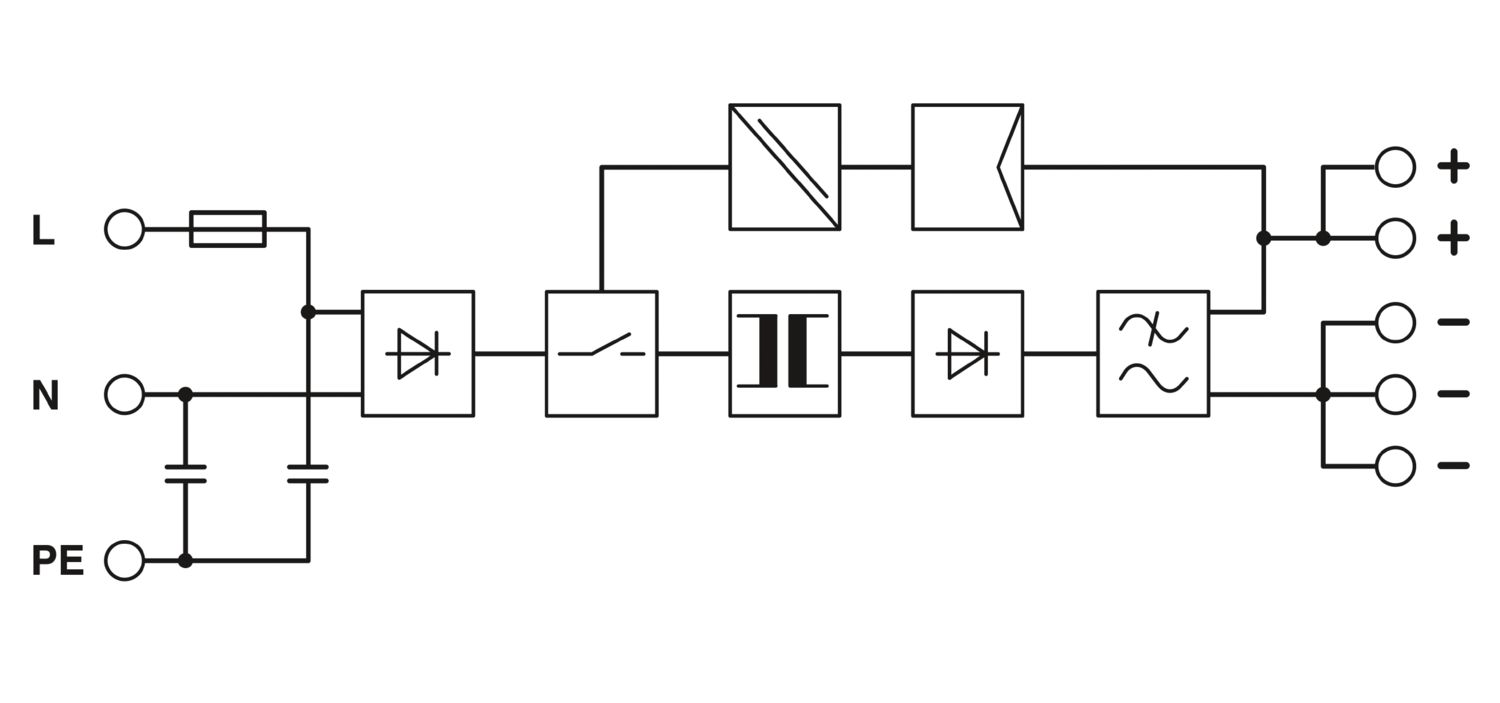 فونیکس کنتاکت مدل TRIO-PS/1AC/24DC/2.5 در حالت ورودی سه فاز در صورت قطع یکفاز اختلالی در عملکرد سیستم بوجود نمی آید و منبع تغذیه با دو فاز باقیمانده به عملکرد خود ادامه میدهد.