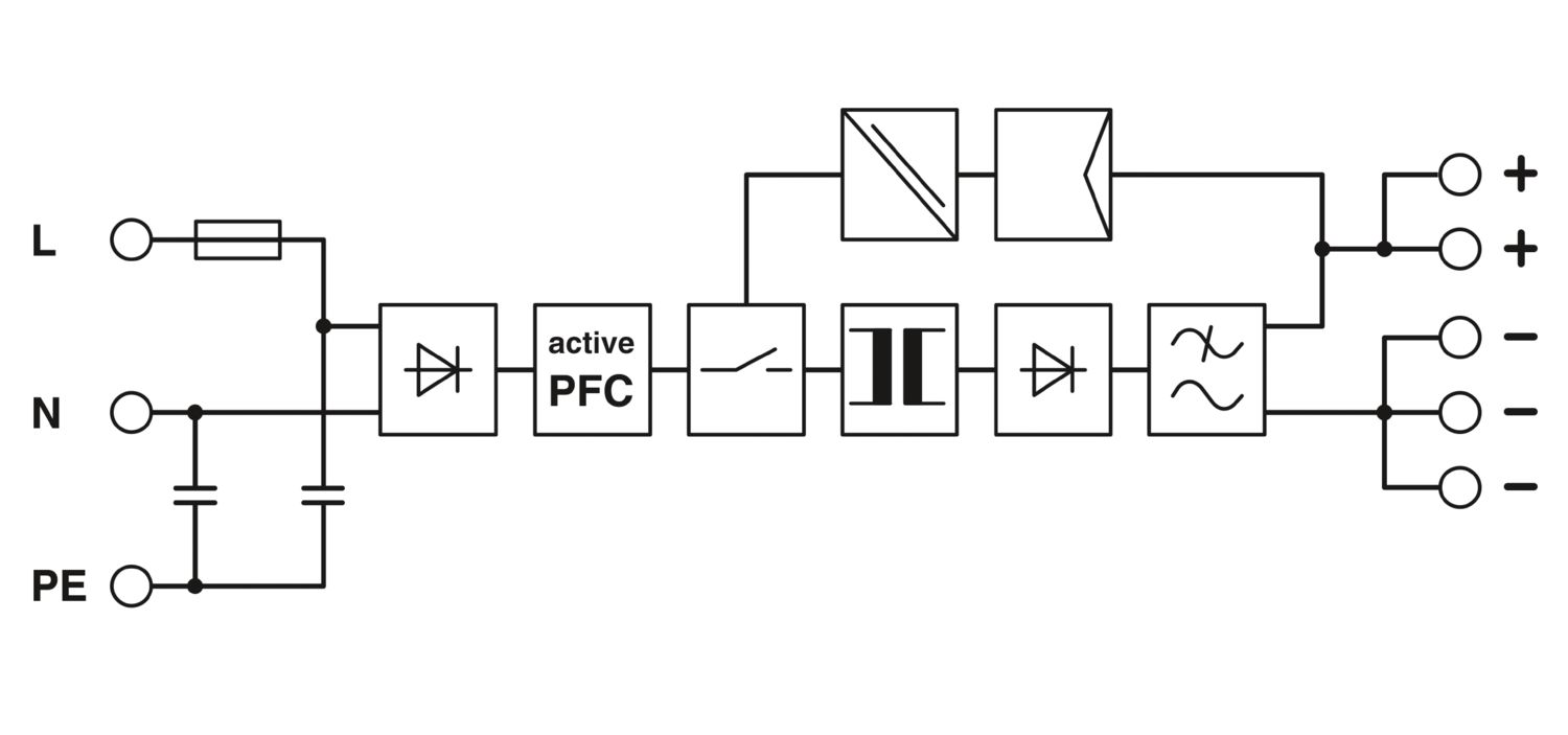 فونیکس کنتاکت مدل TRIO-PS/1AC/24DC/20 در حالت ورودی سه فاز در صورت قطع یکفاز اختلالی در عملکرد سیستم بوجود نمی آید و منبع تغذیه با دو فاز باقیمانده به عملکرد خود ادامه میدهد.